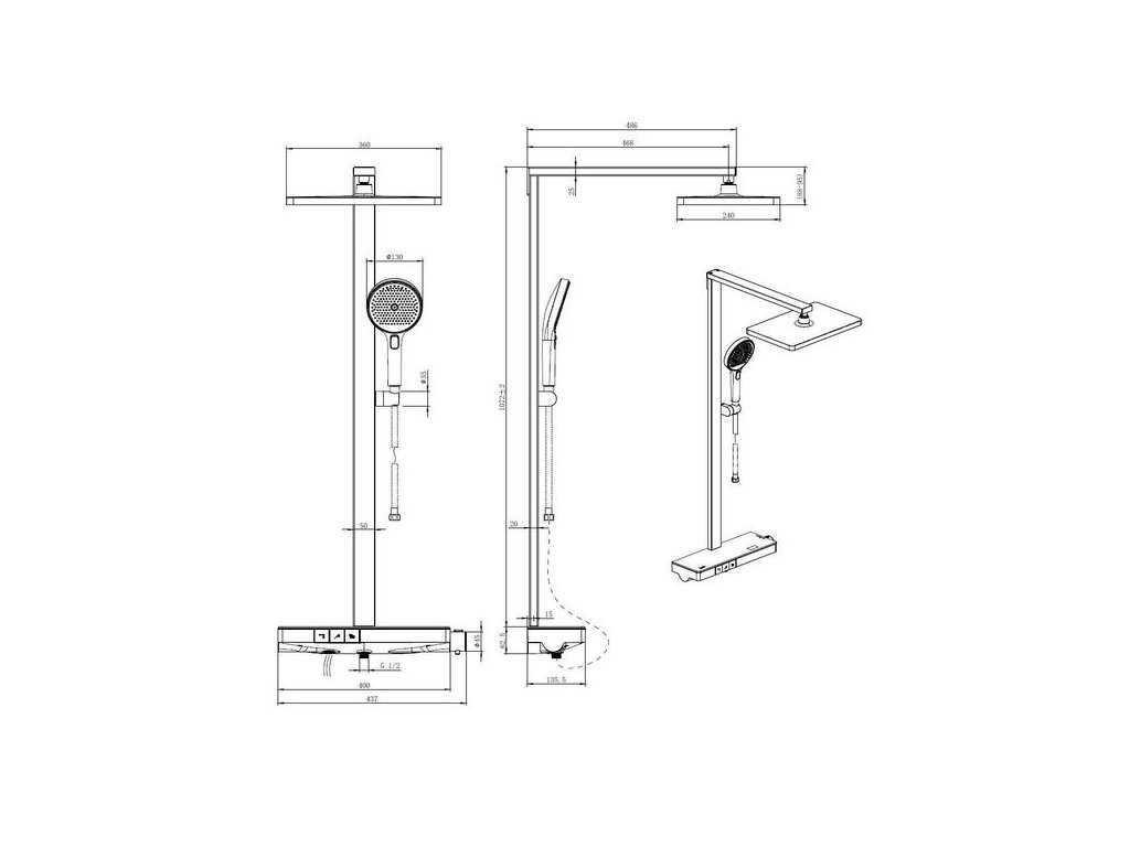 - přepínání mezi hlavovou, ruční sprchou a praktickým vývodem pro napouštění kbelíku