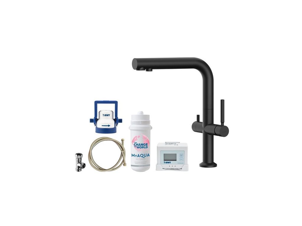 Hlavní roli ve filtraci samozřejmě hraje filtr. V tomto případě se jedná o vynikající MyAQUA Filtered Taste, který nabízí kapacitu až 1 500 litrů. Filtrace probíhá ve dvou krocích. Nejprve dochází k odchytu hrubých částic kterými jsou například písek, kamínky, rez, usazeniny… Během druhé fáze, filtraci aktivním uhlím, dochází k redukci organických substancí, chloru a dalších příměsí, které mají negativní vliv na chuť, vůni i zakalení vody.