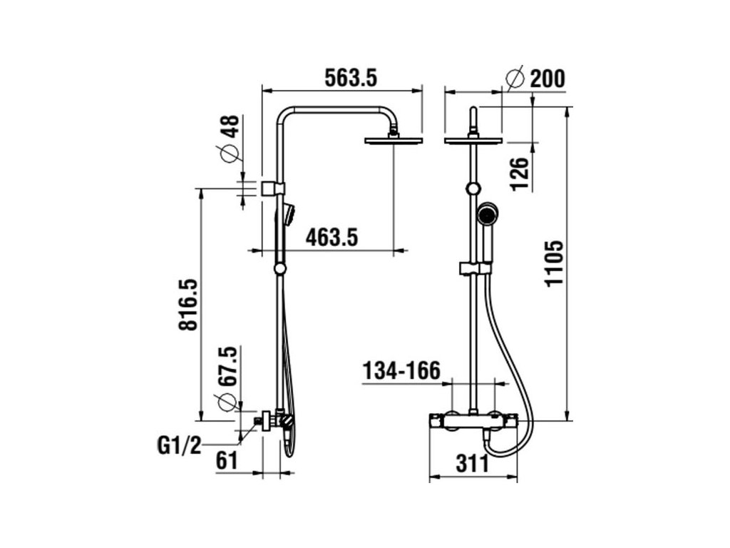 - maximální šířka mezi přípojnými místy (mm): 166