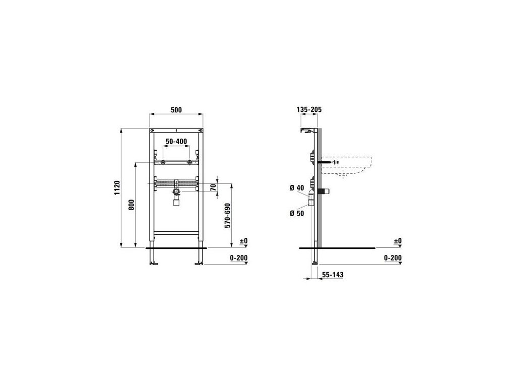 - samonosný ocelový rám do sádrokartových příček pro umyvadlo