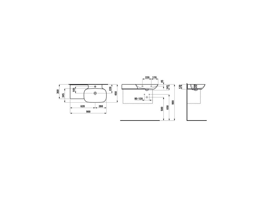 Laufen Ino Nábytkové umyvadlo s poličkou vlevo 90 cm, LCC - bílá