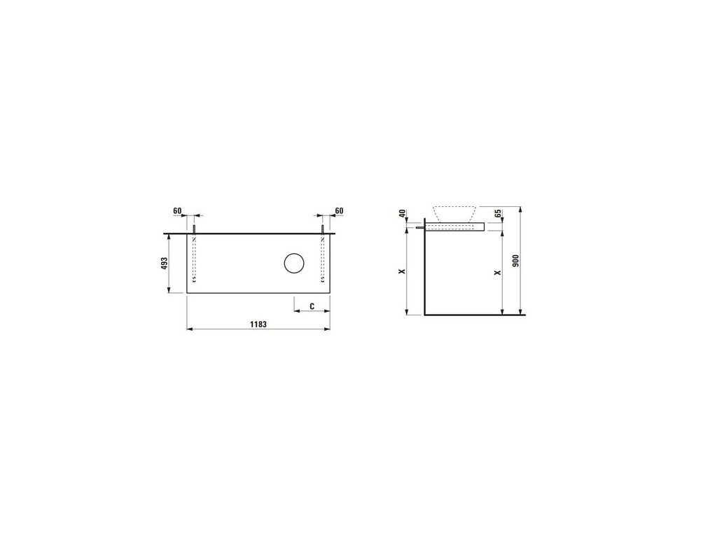 Laufen Lani Umyvadlová deska 120 cm, s výřezem vpravo, vč. 2 nástěnných držáků, divoký dub H4046731122671