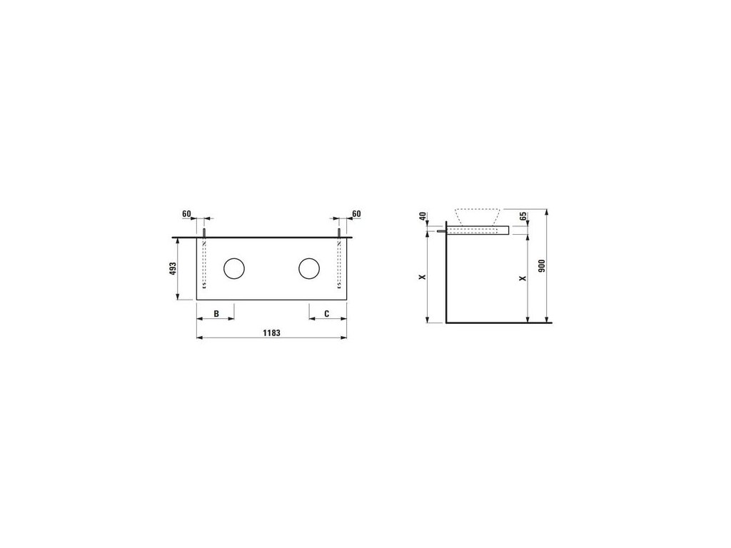 Laufen Lani Umyvadlová deska 120 cm, s výřezy vlevo a vpravo , vč. 2 nástěnných držáků, šedá traffic H4046741122661