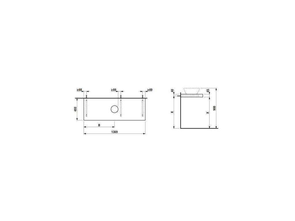 Laufen Lani Umyvadlová deska 140 cm, s výřezem uprostřed, vč. 2 nástěnných držáků, bílá mat H4046811122601