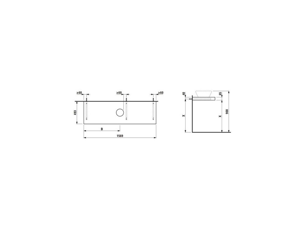 Laufen Lani Umyvadlová deska 160 cm, s výřezem uprostřed, vč. 2 nástěnných držáků, divoký dub H4046911122671
