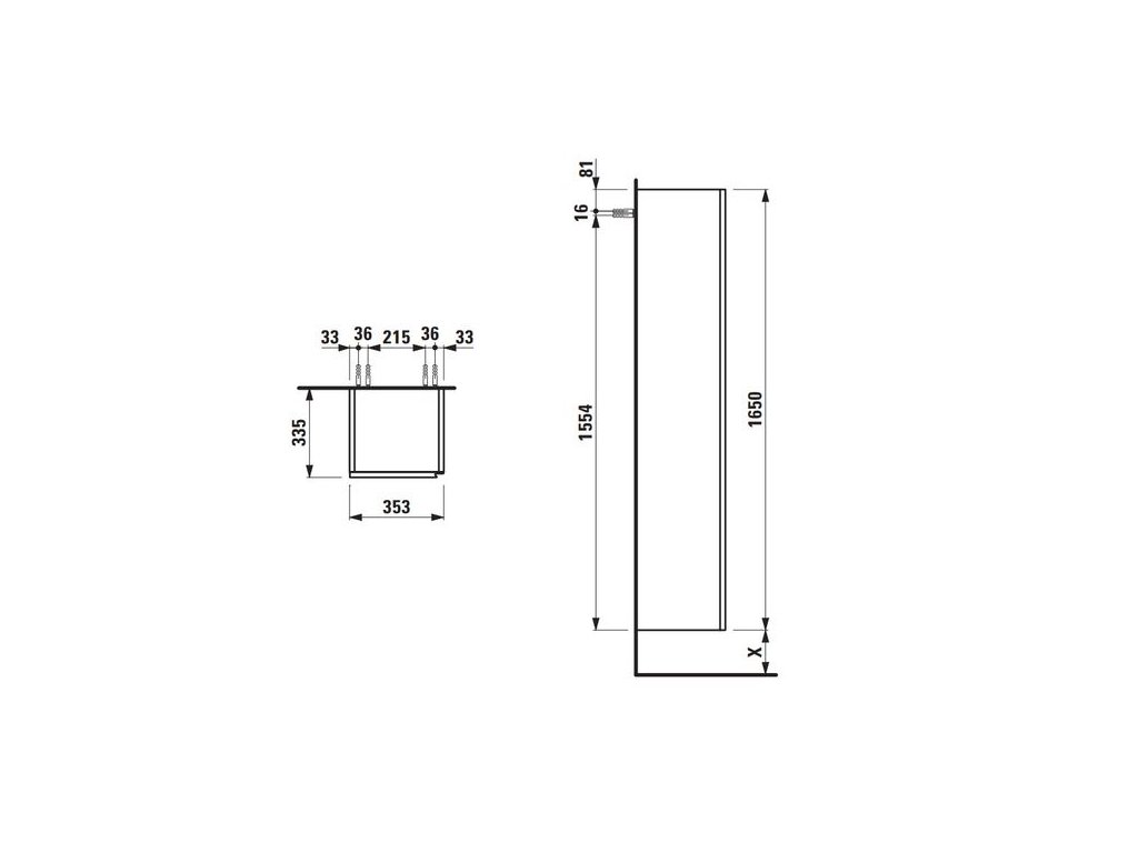 Laufen Lani Vysoká skříňka, závěsy dveří vlevo, 35,3x165 cm, bílá mat, H4037211122601