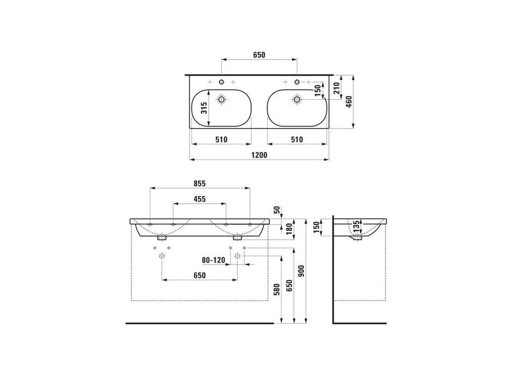 Laufen Lua Dvojumyvadlo 120 x 46 cm bez otvoru, bílá H8140810001091