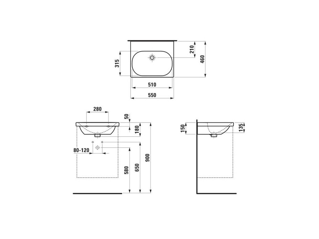 Laufen Lua Umyvadlo 55 x 46 cm bez otvoru a přepadu, LCC bílá H8100824001421