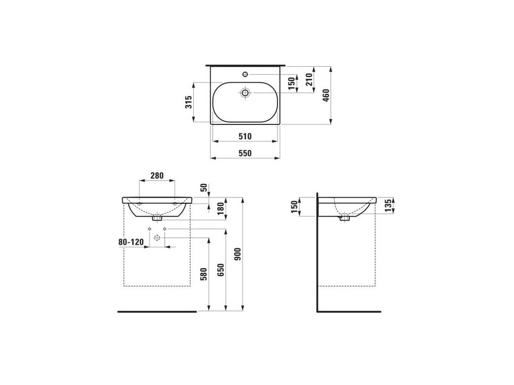 Laufen Lua Umyvadlo 55 x 46 cm bez přepadu, LCC bílá H8100824001561