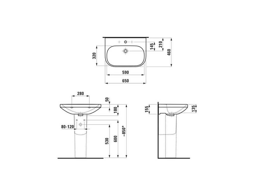 Laufen Lua Závěsné umyvadlo 65 x 46 cm bez otvoru a přepadu, LCC bílá H8110864001421