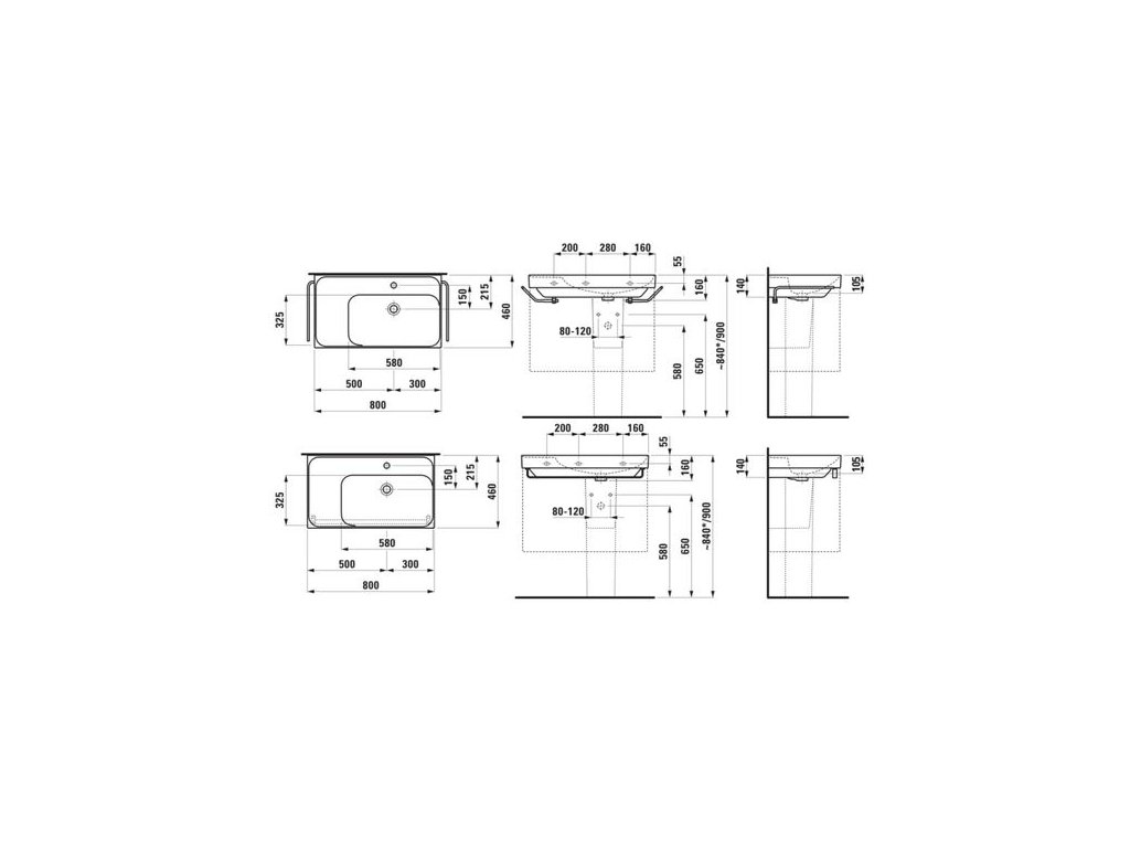 Laufen Meda Umyvadlo 80 cm s odkládací plochou, levé, bílá H8171150001041