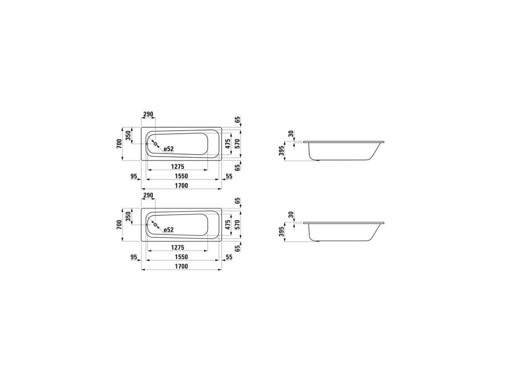 Laufen Moderna Plus Vana ocelová 170x70 cm, bez noh, bílá H2251200000401