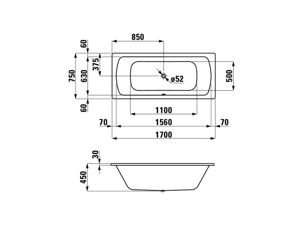 Laufen Moderna Vana plechová 170x75 bez noh H2250700000401