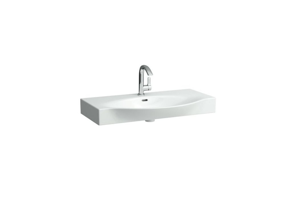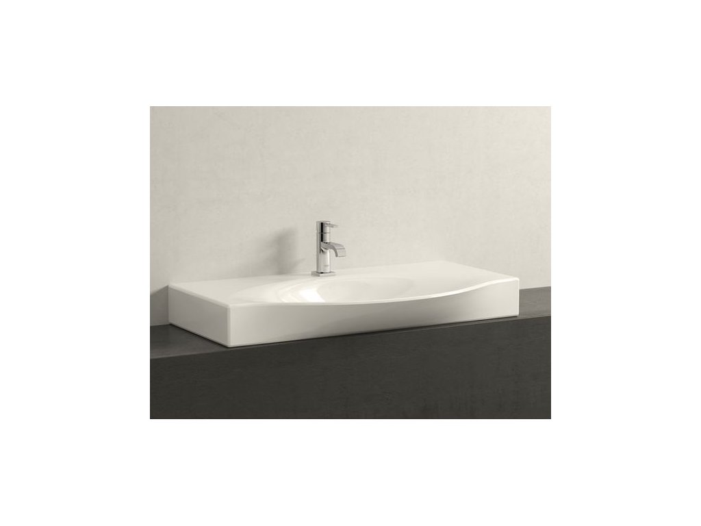 Obdélníkové hranaté umyvadlo s oblou přední stranou.