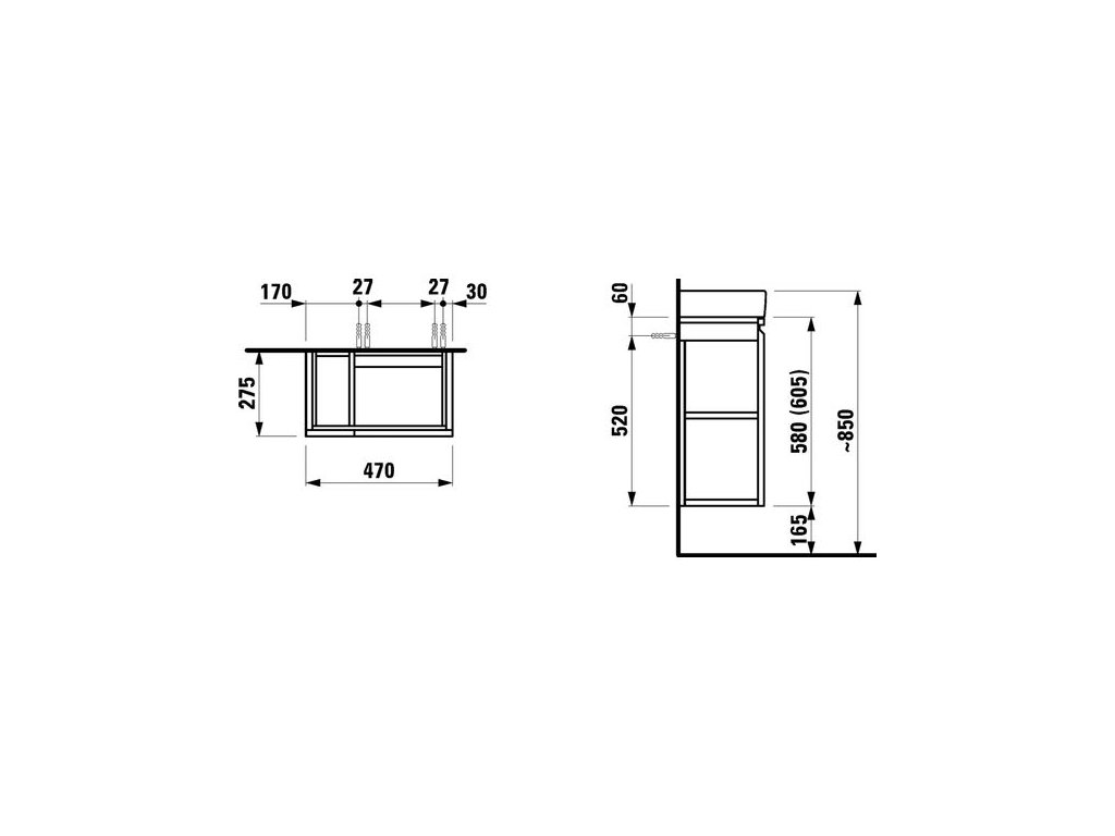 Laufen Pro S Skříňka pod umyvadlo 47 cm, závěsy dvířek vpravo, bílá lesklá H4830020954751