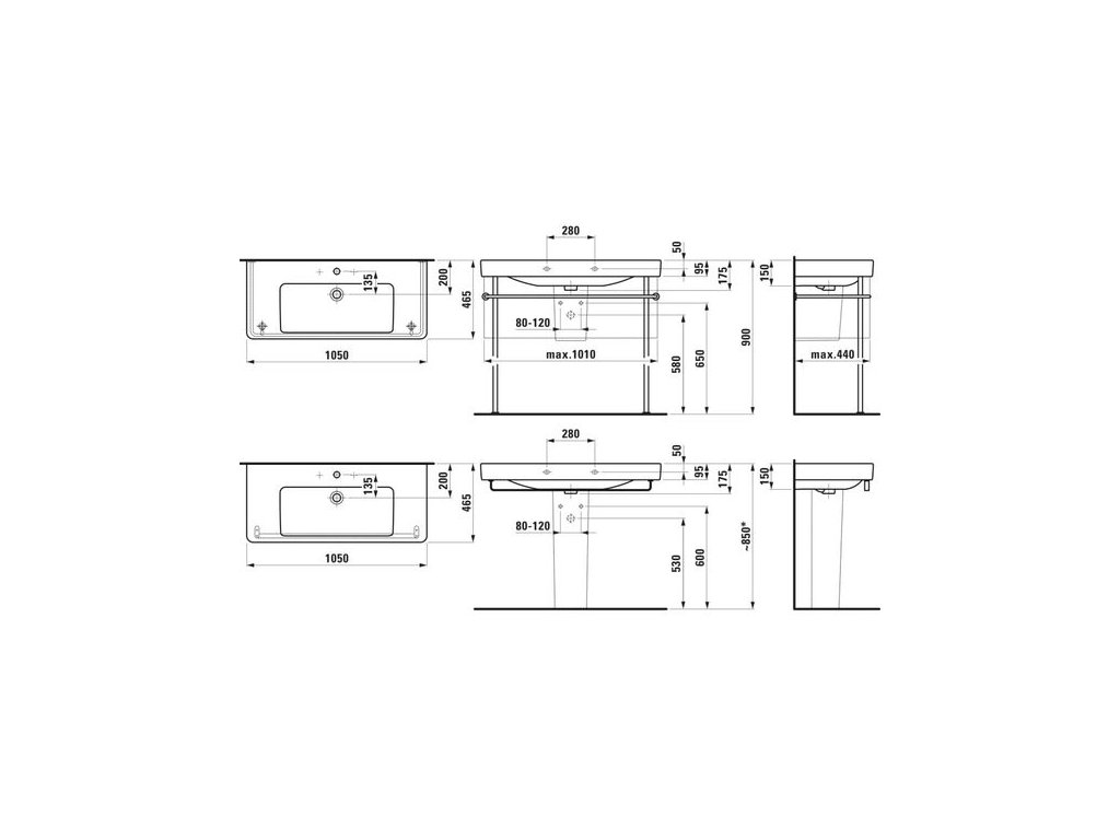 Laufen Pro S Umyvadlo 105 x 46,5 cm bez otvoru, bílá H8139660001091