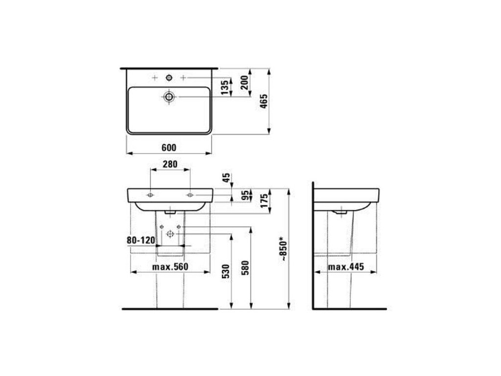 Laufen Pro S Umyvadlo 60 x 46,5 cm, bílá H8109630001041