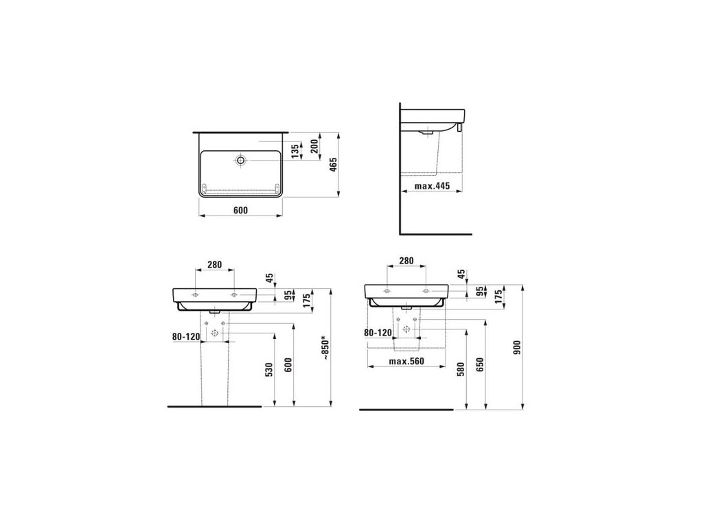 Laufen Pro S Umyvadlo 60 x 46,5 cm bez otvoru, bílá H8109630001091