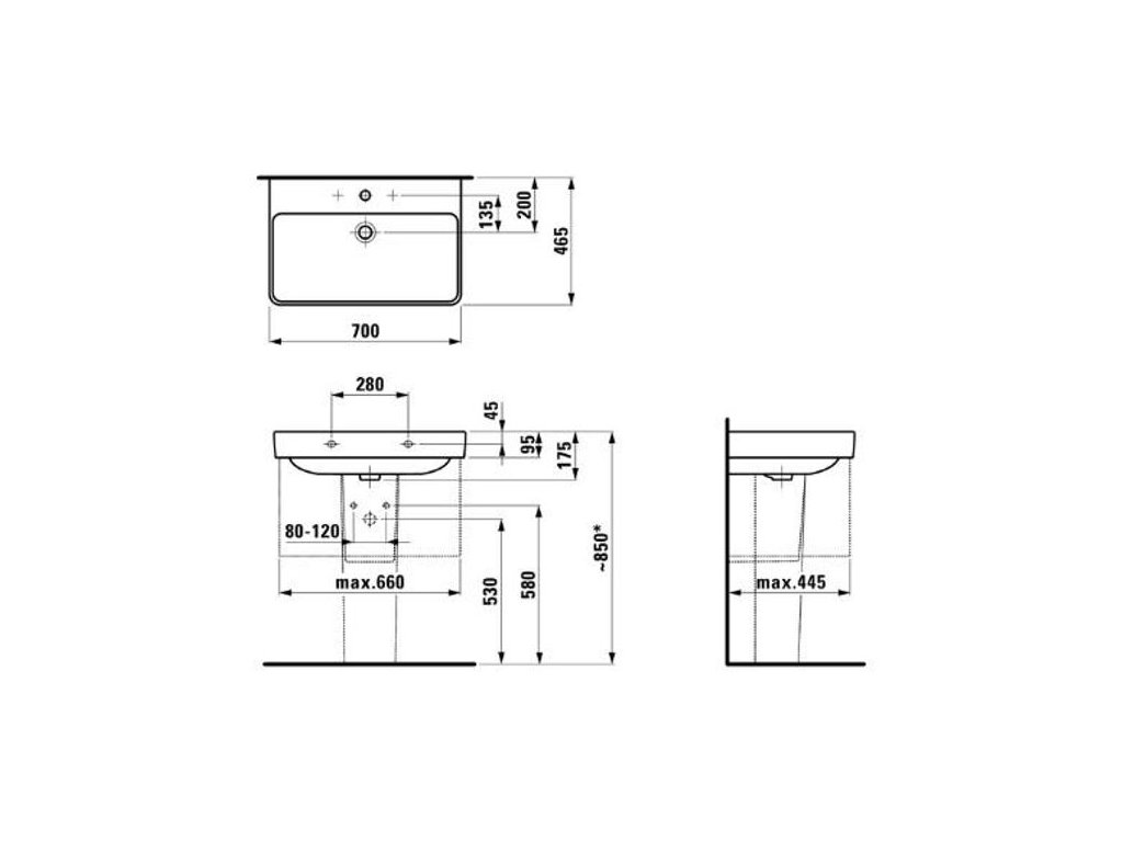 Laufen Pro S Umyvadlo 70 x 46,5 cm, bílá H8109670001041