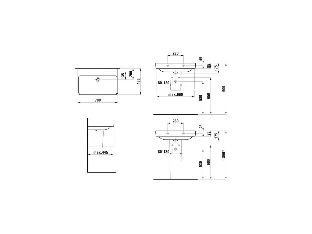 Laufen Pro S Umyvadlo 70 x 46,5 cm bez otvoru, LCC bílá H8109674001091