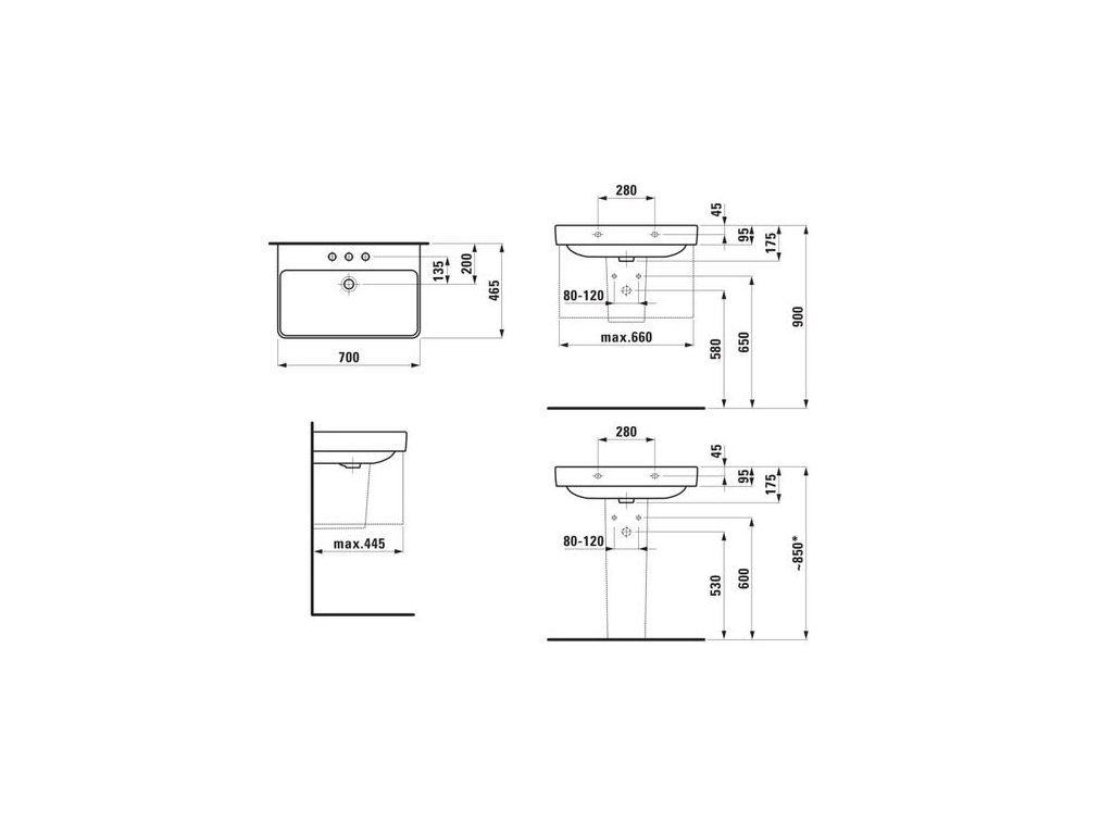 Laufen Pro S Umyvadlo 70 x 46,5 cm se třemi otvory, bílá H8109670001081