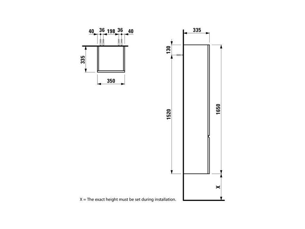 Laufen Pro S Vysoká skříňka, 4 skleněné poličky, závěsy dvířek vlevo H4831210954631