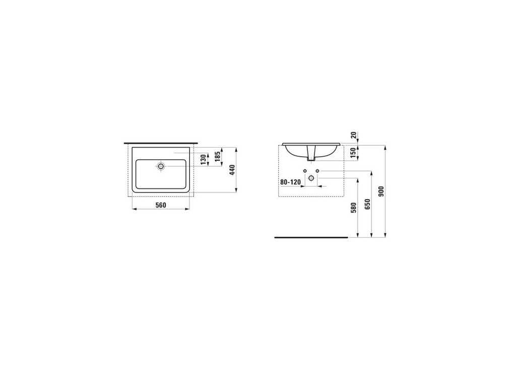 Laufen Pro S Zápustné umyvadlo 56 x 44 cm bez otvoru a přepadu, bílá H8189630001091