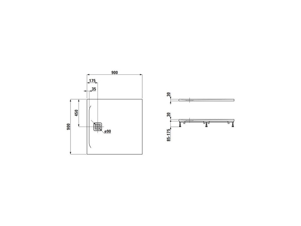 Laufen Pro Vanička 90x90 cm antracit H2109560780001