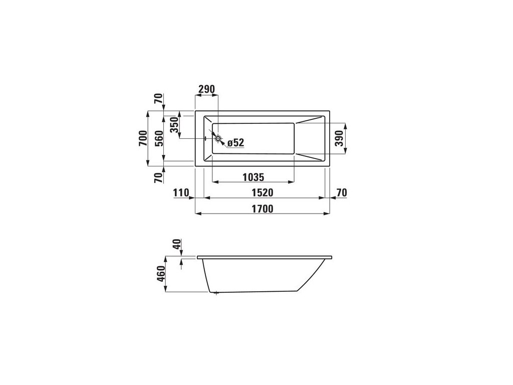 Laufen Pro Vestavná vana 170 x 70 cm, bílá H2309500000001