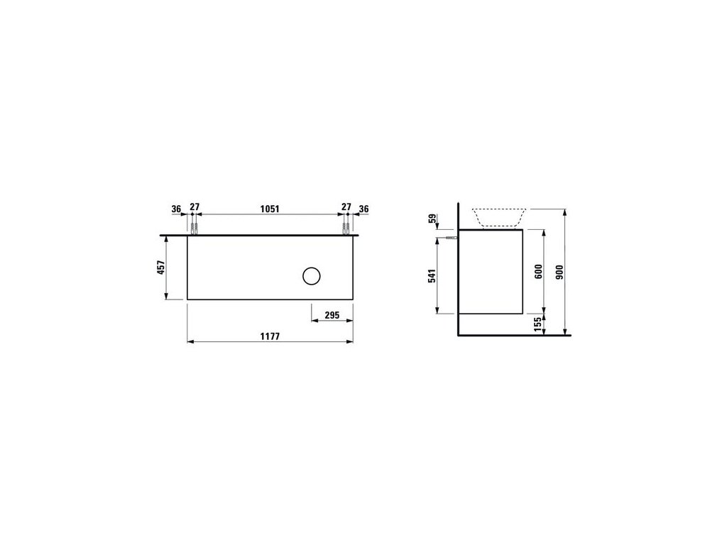 Laufen The New Classic Skříňka pod umyvadlo 118 × 45 × 60 cm se 2 zásuvkami, s výřezem vpravo, bílá mat H4060840851701