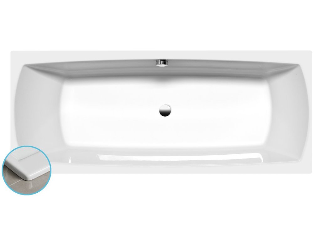 - Vana s pohodlně tvarovanými stěnami pro opření zad na obou stranách a odtokem umístěným uprostřed.