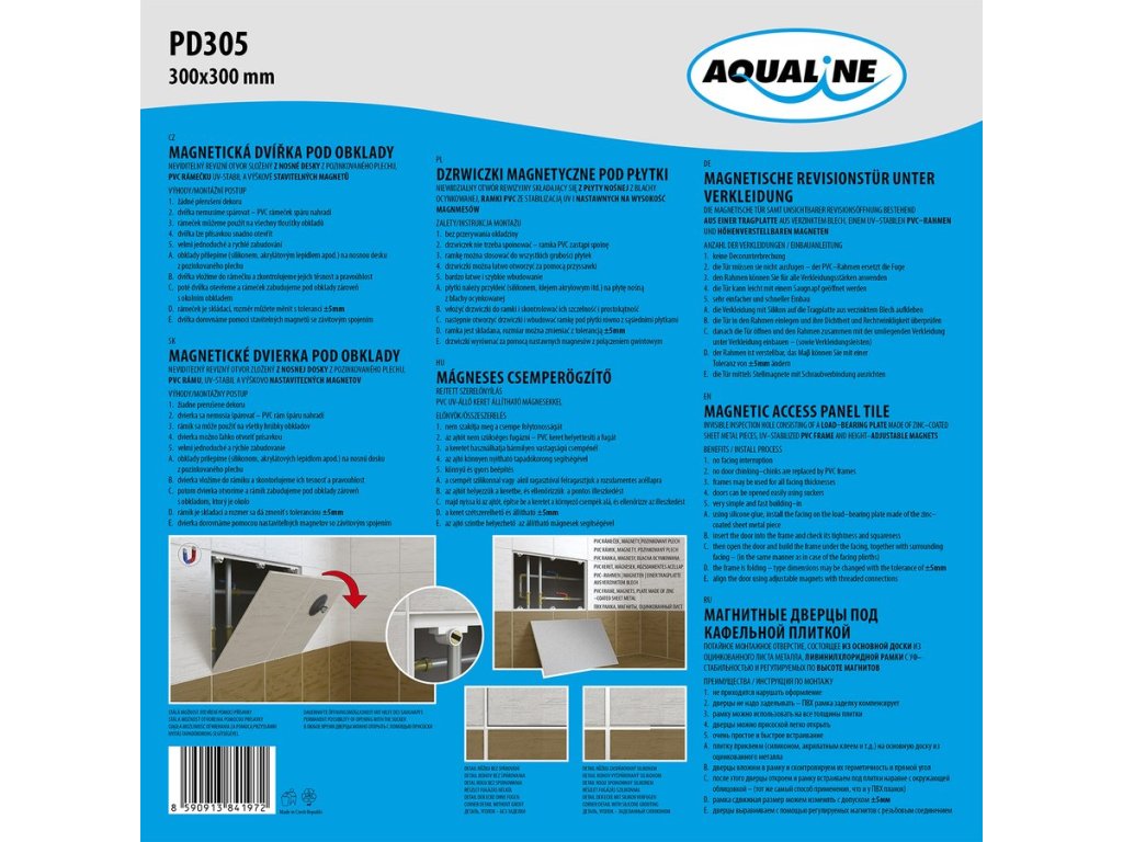 Aqualine Magnetická dvířka pod obklady 300x300 mm
