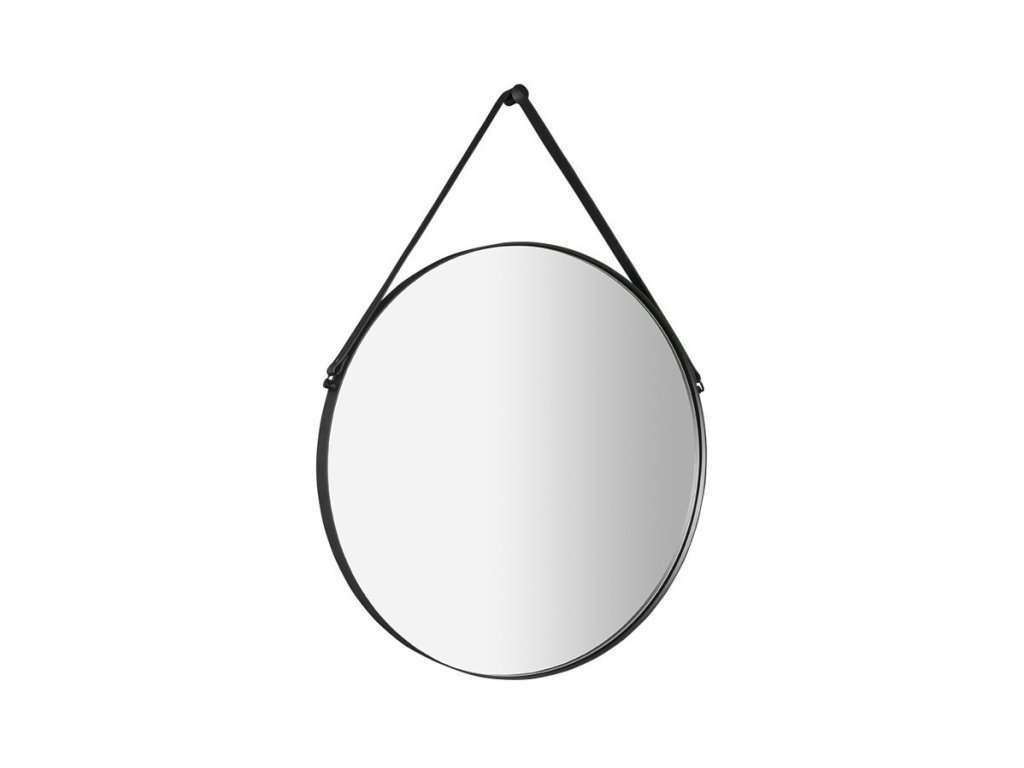 Sapho ORBITER kulaté zrcadlo s koženým páskem ø 50cm, černá mat
