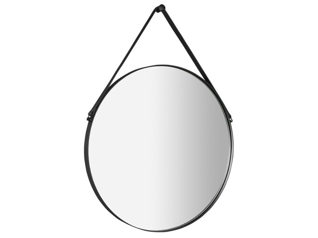 Sapho ORBITER kulaté zrcadlo s koženým páskem ø 70cm, černá mat