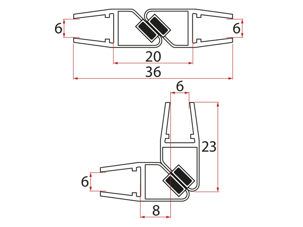 Polysan Set magnetických těsnění 45°pro sklo 6/6mm, 1900mm