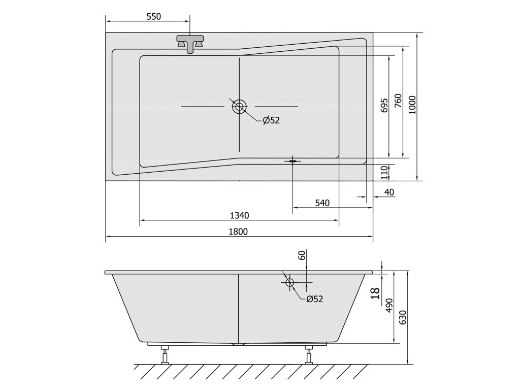 Vana má oproti standardním vanám výšku hrany okraje pouze 18 mm. Tato vana je určena pouze k obezdění, které díky nízké hraně působí estetičtěji, nebo zapuštění do pódia. Nelze ji instalovat s obkladovým panelem.