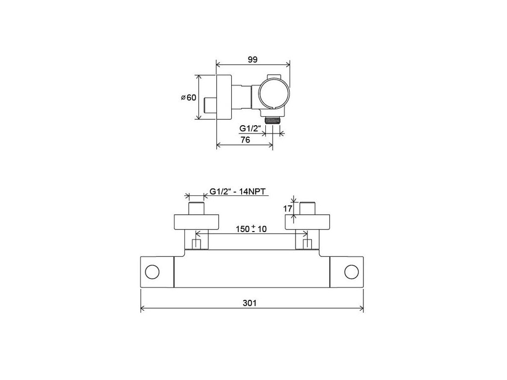 Ravak Baterie Puri Baterie sprchová termostatická PU033.00/150 X070116