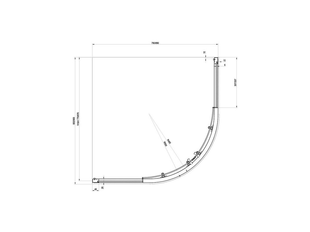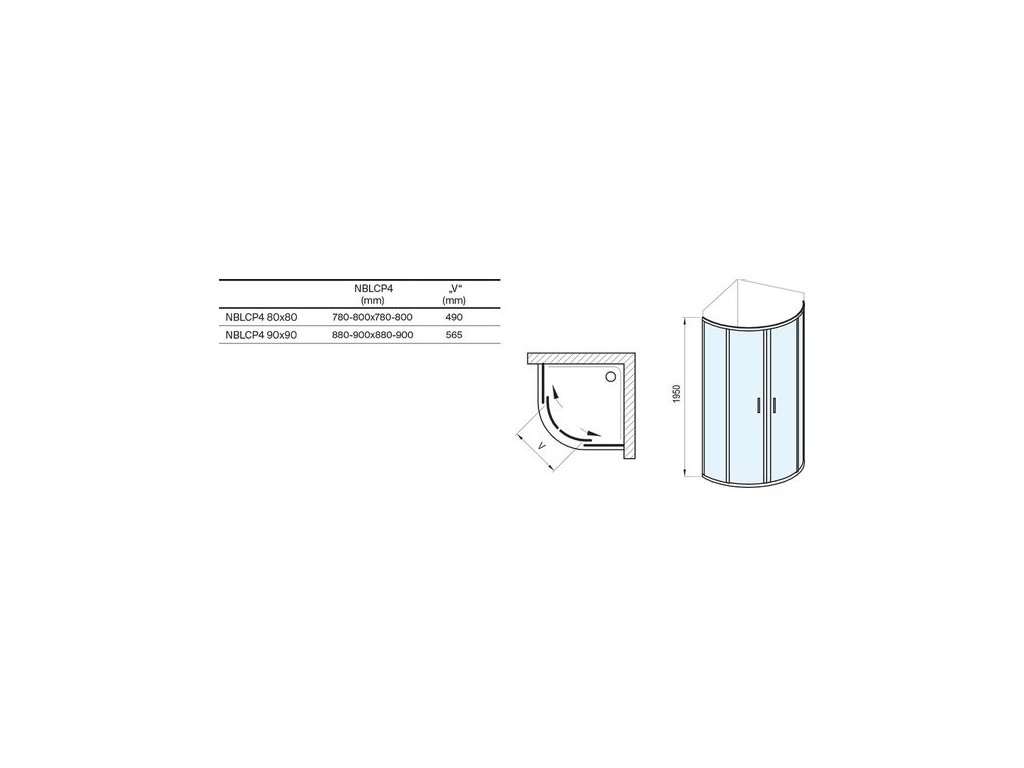 Výrobek tvoří dva pevné rovné díly a dva ohýbané díly jako posuvné dveře. Montuje se do obloženého rohu koupelny na sprchové vaničky nebo přímo na podlahu se zabudovaným odtokovým žlabem či podlahovou vpustí.