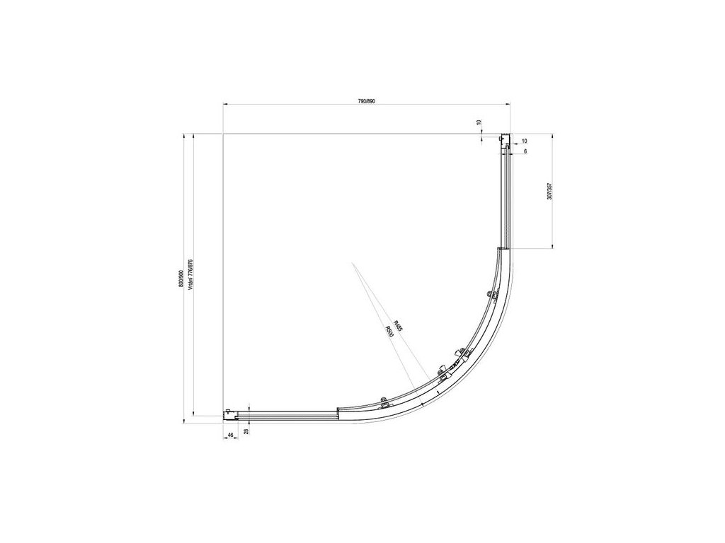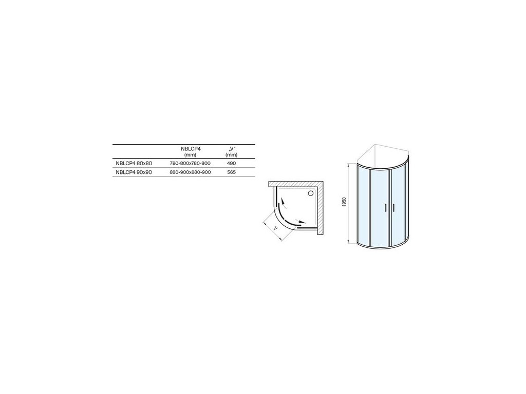 Výrobek tvoří dva pevné rovné díly a dva ohýbané díly jako posuvné dveře. Montuje se do obloženého rohu koupelny na sprchové vaničky nebo přímo na podlahu se zabudovaným odtokovým žlabem či podlahovou vpustí.