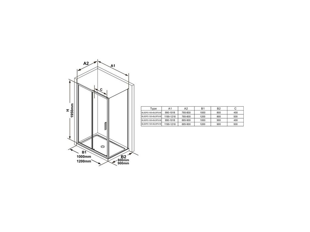 Výrobek tvoří jeden pevný díl. Montuje se do obloženého rohu koupelny (v kombinaci se sprchovými dveřmi BLSDP2) na vaničky RAVAK Perseus, Perseus Pro, Perseus Pro Flat, Perseus Pro Chrome, Gigant, Gigant Pro, Gigant Pro Flat, Gigant Pro Chrome nebo přímo na podlahu se zabudovaným odtokovým žlabem či podlahovou vpustí.
