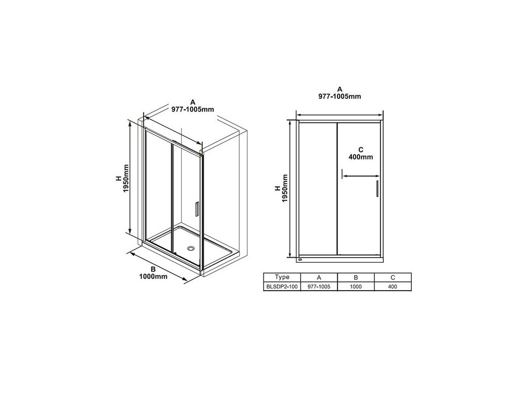 Ravak Blix Slim Sprchové dveře 100 cm, černá/čiré sklo BLSDP2-100BT X0PMA0300Z1