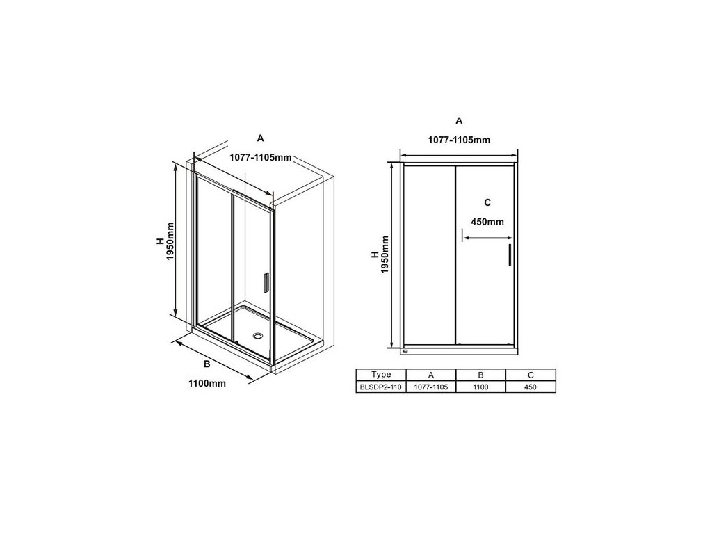 Ideální řešení pro vytvoření sprchového prostoru v nice o šířce 110 cm.