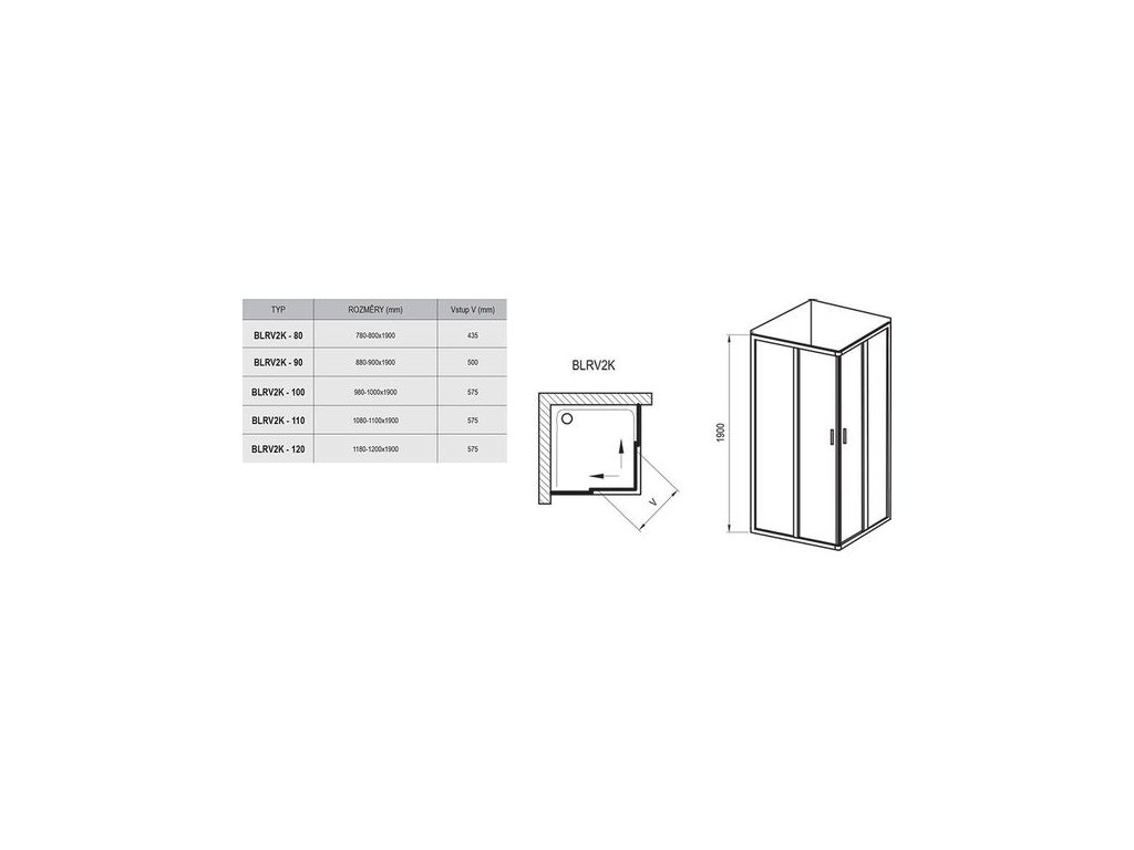 Ravak Blix Sprchový kout 1/2 čtverec/obdélník 90 cm transp.bílá 1XV70100Z1 BLRV2K-90
