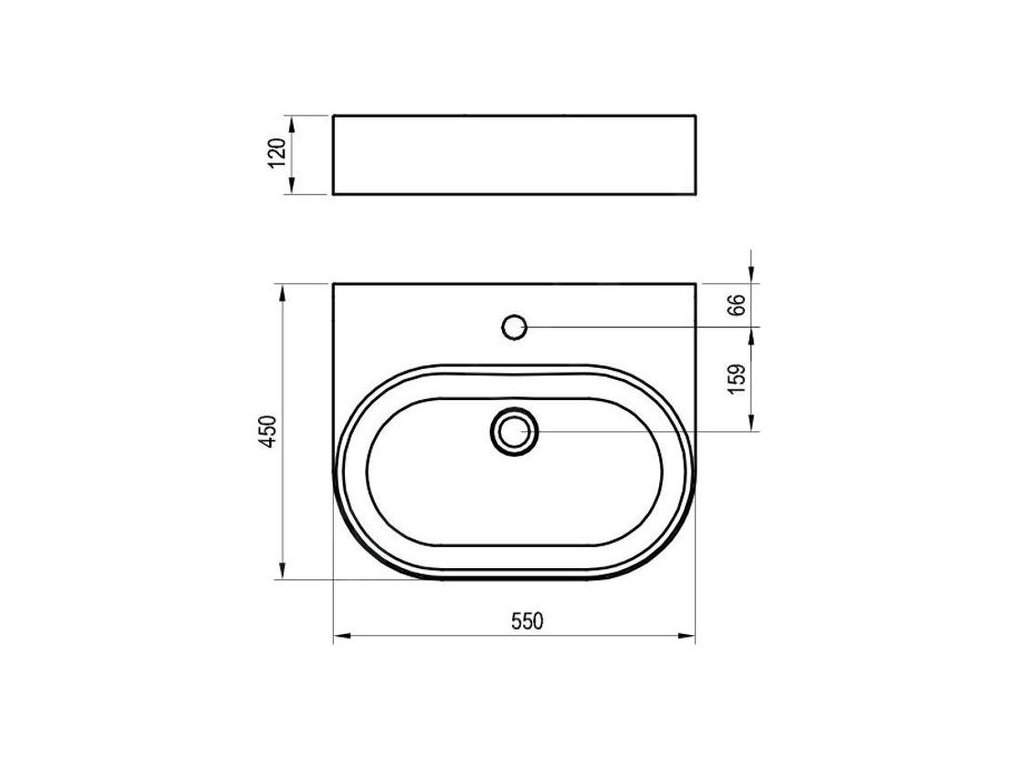 Ravak Ceramic Slim Wall O Umyvadlová mísa 55x45 cm, bílá XJX01155004