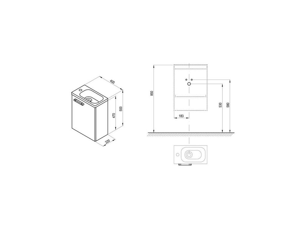 Korpus je dodáván samostatně (bez dvířek) ve smontovaném stavu včetně montážní sady (šrouby, panty, záslepky) a madla. Součástí skříňky je i polička. Dvířka jsou v barevném provedení bílá lesk a objednávají se zvlášť v levé (L) nebo pravé (P) variantě. Skříňka je montována na zeď.