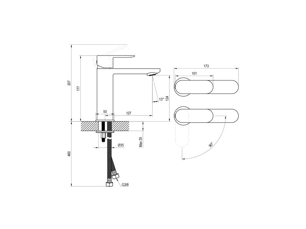 - připojovací hadičky: flexibilní 450 mm, průměr G3/8
