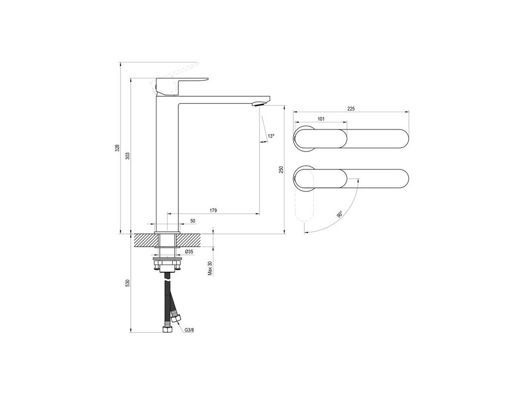 - připojovací hadičky: flexibilní 450 mm, průměr G3/8