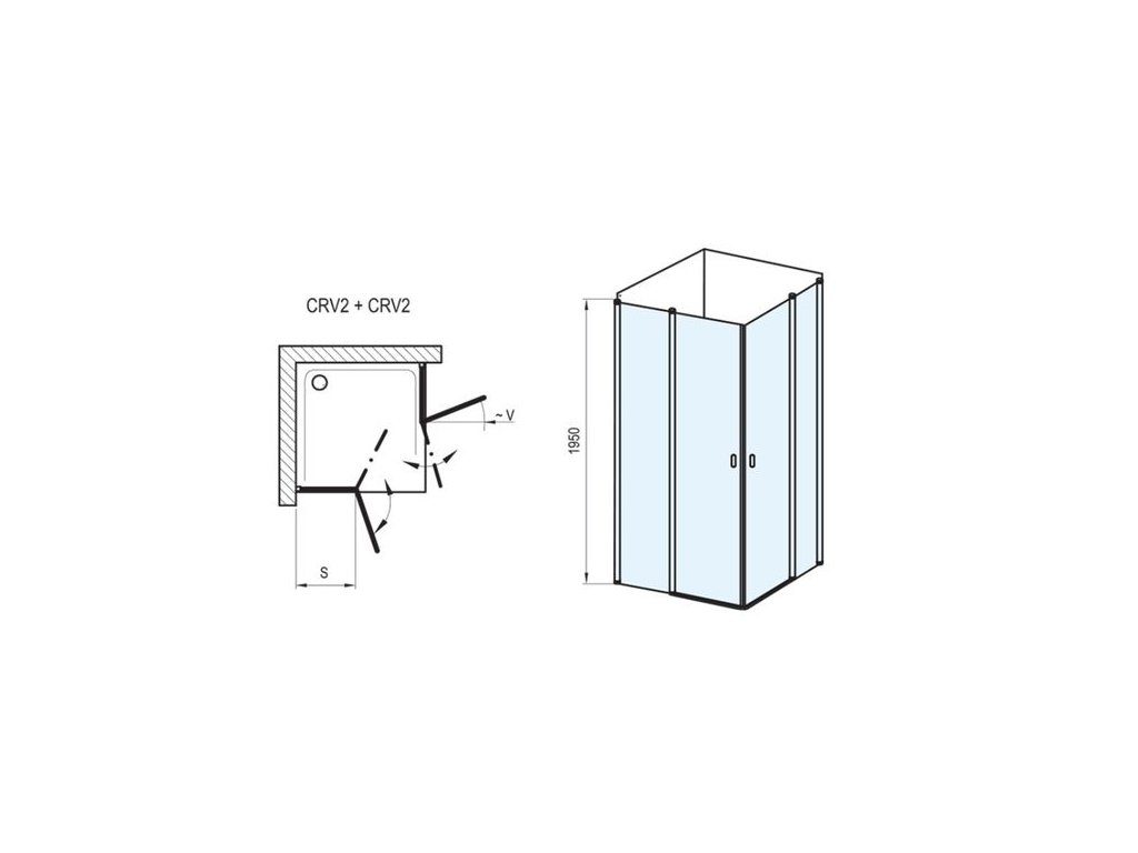 - Sprchový kout je složen ze dvou samostatných sprchových dveří. Součástí balení je 2x krátký držák.