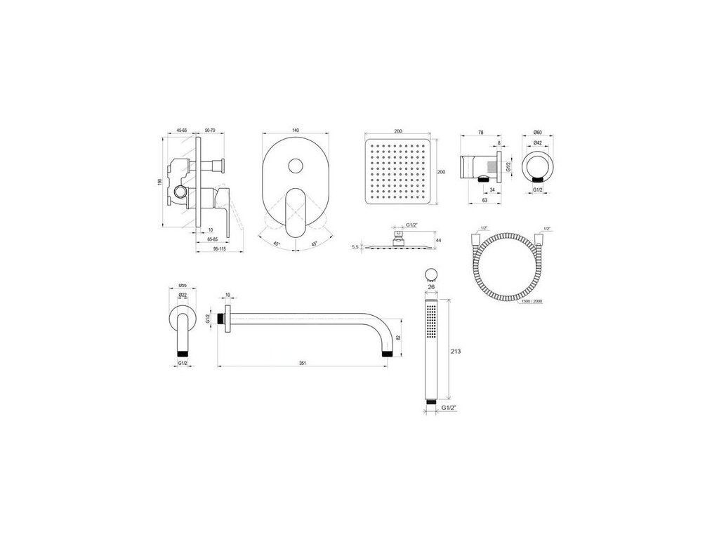 Sprchový podomítkový set CR 090.01CR obsahuje: