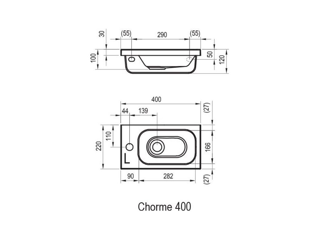 Umývátko Chrome není vybaveno přepadem, proto je nutné použít pevnou umyvadlovou piletu a stojánkovou baterií. Lze jej instalovat na zeď nebo doplnit skříňkou pod umývátko Chrome 400 v odpovídající levé variantě. Montážní sada (připojovací hmoždinky, vruty, atd.) je součástí dodávky.